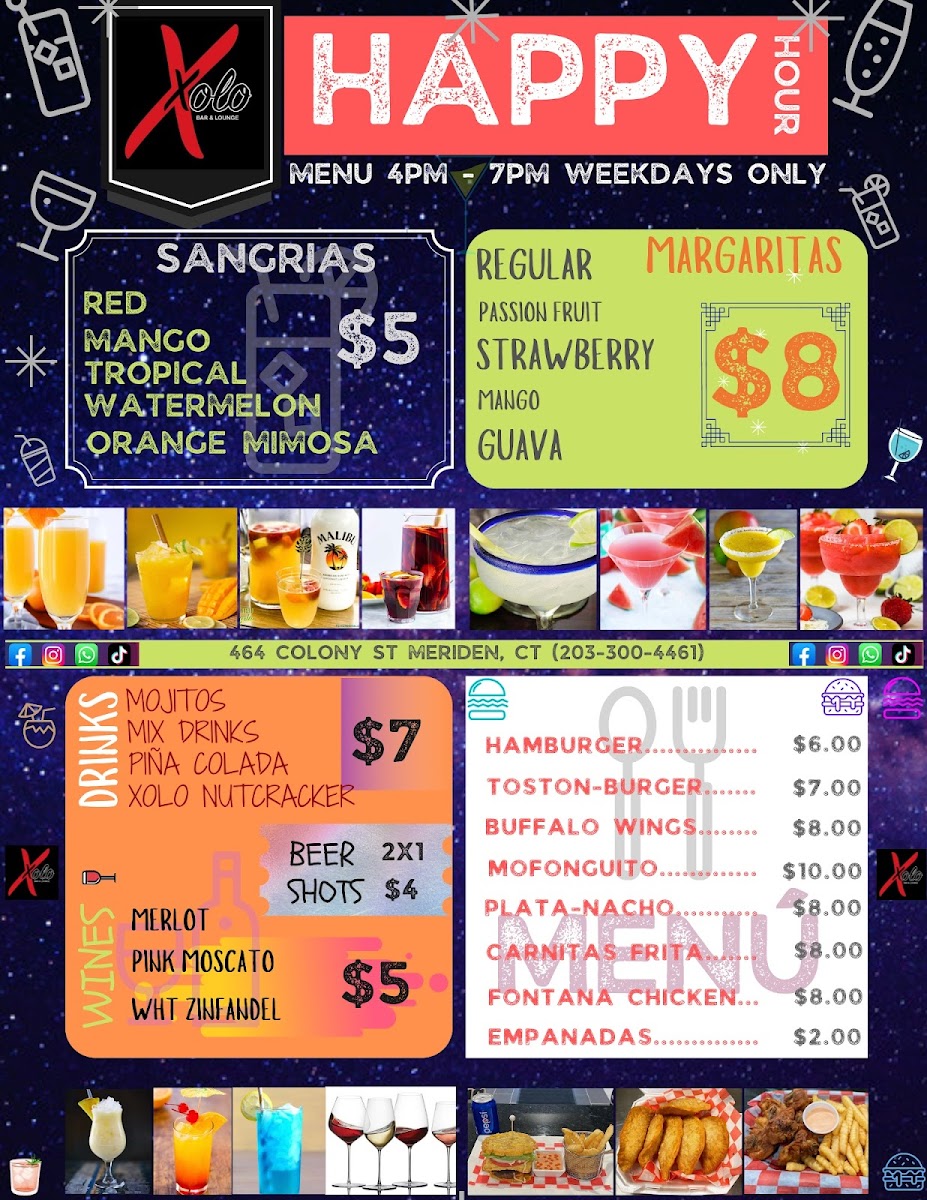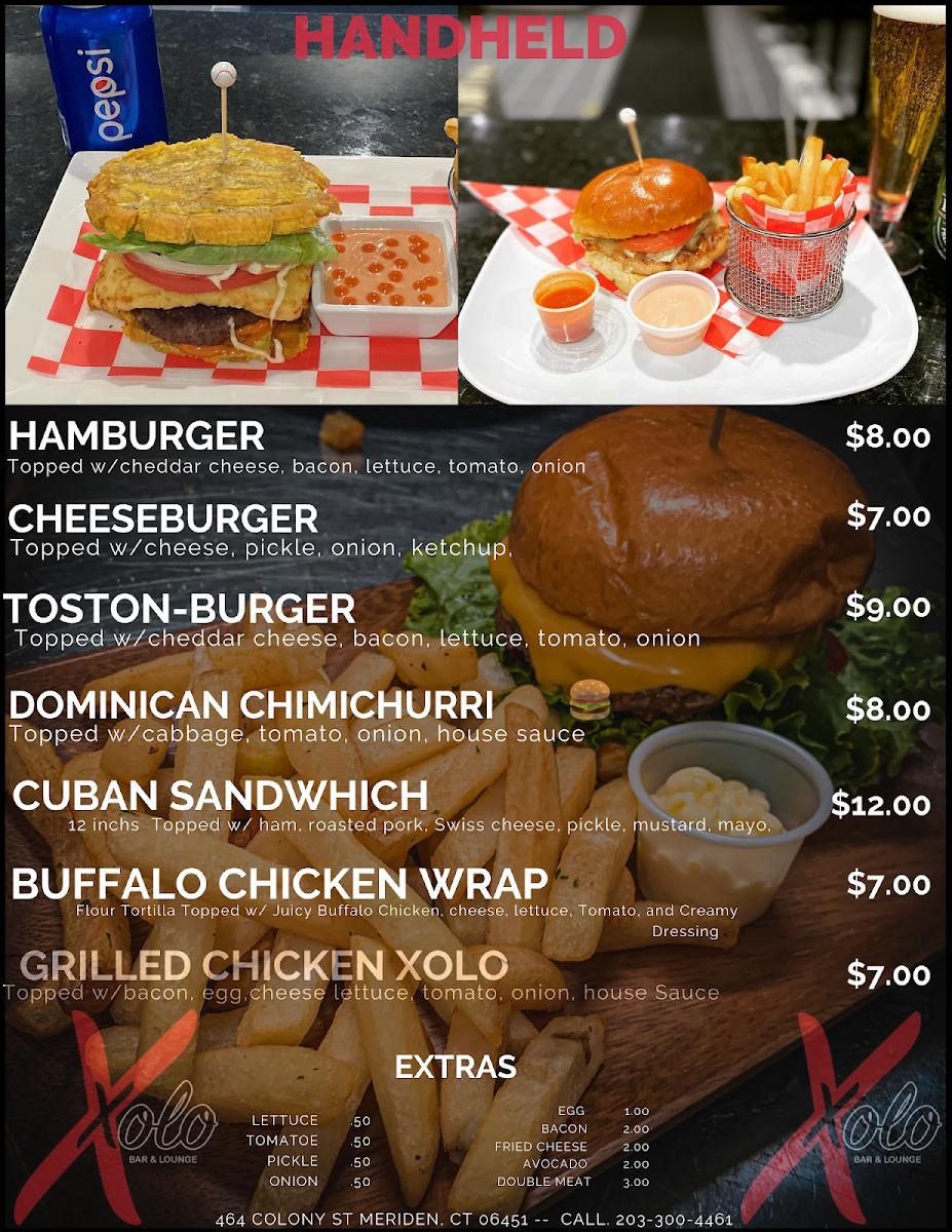 At Xolo Bar & Restaurant Menu, you'll find a vibrant blend of fresh ingredients and bold flavors. Nestled in the heart of Meriden, this spot offers a diverse menu that's perfect for any craving. Whether you're in the mood for a hearty meal or something light and flavorful, the offerings are sure to satisfy. With a range of appetizers, entrees, and signature drinks, every dish has been thoughtfully crafted to provide something special for every guest. From savory tacos to decadent desserts, the menu brings together traditional favorites and creative twists. Xolo’s inviting atmosphere makes it the perfect place to enjoy a relaxed meal or celebrate with friends. Come explore a menu that promises to deliver a great dining experience every time.